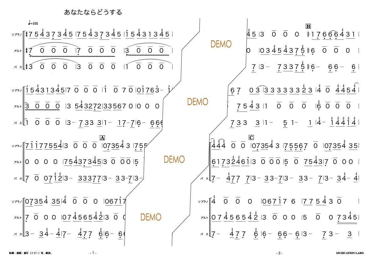 Dのアルトはメロのハモリ。メロディがソプラノとアルト両方に移動します。